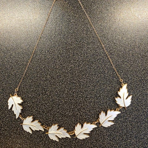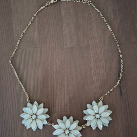 Kjede i sølv med hvit emalje