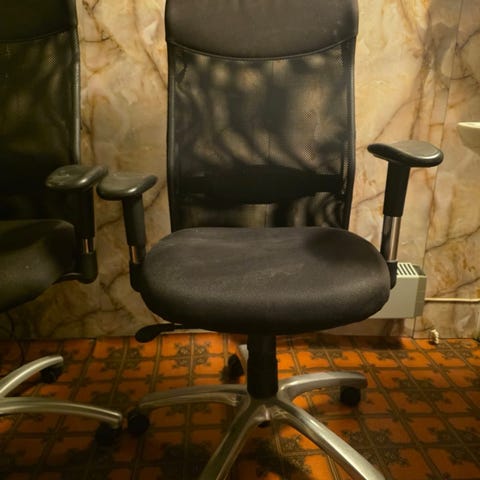 2 flotte kontorstoler i fin stand som er gode å sitte i selges. Har blitt brukt som gjeste stoler på et lite kontor.
