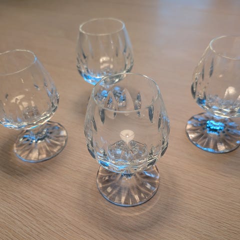 Skjeldent pene vintage konjakk-glass med et nydelige jaktmotiv..