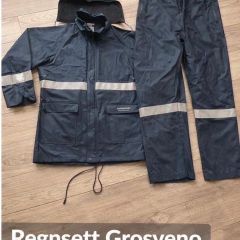 Jakken er i Helly Hansen, mens den matchende buksen er i annet merke. Str: medium (men`s 50-52. Ladies 44-46) Settet er som ny, men det er noe slitasje innvendig i lommene, hvilket ikke er synbart utvendig.