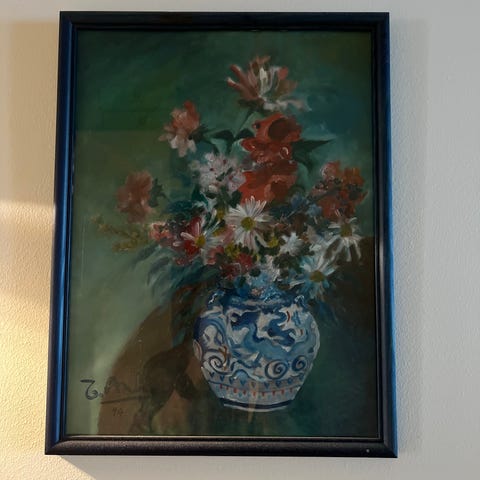 The maker's first piece to be offered at auction was "Still Life with Flowers" at Rütten Auction House in 2012.