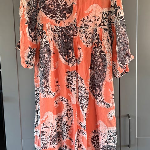 Viskose. Til midt på leggen (jeg er 165 cm høy)