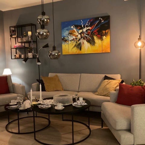 Kjøpt ny i mars 2023, men selges da den ikke passet slik jeg ønsket. Har hengt fint på et gjesterom, og fremstår derfor som ny. Nypris på lampen var 2199,-
