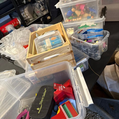 Grønn, gul og oransje er ikke brukt. Litt igjen av blå og rosa. Selges samlet.