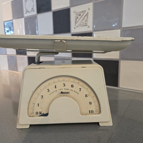 Krem farge. Max 4kg. Meget pent, lite brukt. Gummi-ben på undersiden. Bør hentes.