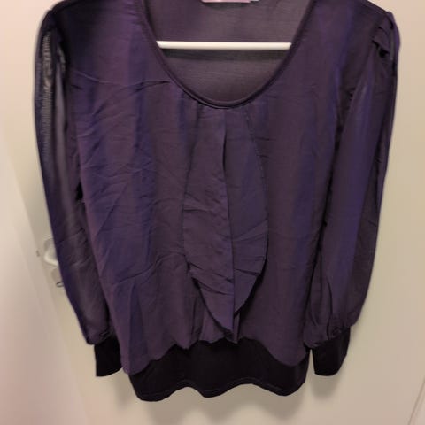 Bolerojakke fra Zizzi. Blankt stoff på ermene, en lomme venstre side. 1 knapp i front. Fronten går ned i i spisser,nesten som en vest. Vanskelig og beskrive. Kan sendes på kjøpers reg.