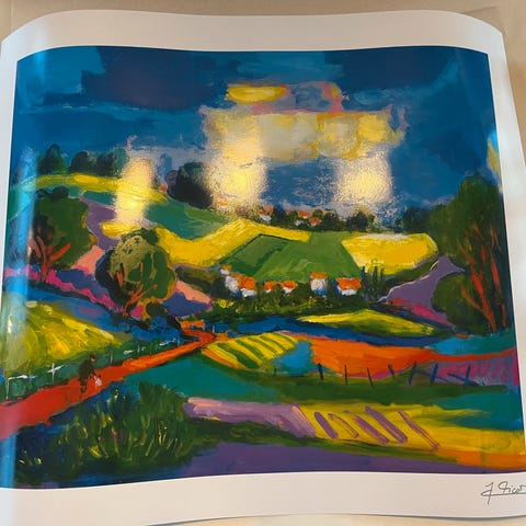 Dette praktfulle litografiet er EA merket (artistens eksemplar) og har naturligvis veldig klare og sterke farger. Litografiet har aldri vært eksponert for sollys og selges med glass og ramme. Bildets mål (uten ramme) er: 48 cm x 38 cm.