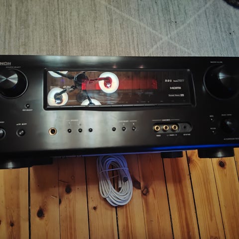 17 kg forsterker !! Kraftig plugg på 7 x 120 watt. Med det meste av tilkoblingsmuligheter. Inkl. orginal fjernkontroll. Selges kr 1299.- . Den veier 17 kg og må hentes