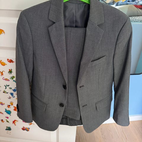 Pent brukt dress fra Cubus. Jakke i str 134, bukse i str 128. Mangler en knapp i jakken, men har knappen, så det er enkel å sy den på igjen. Nypris for settet er 1100,- (700 + 400)