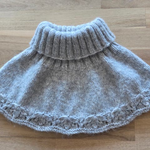 Hjemmestrikket hals i økologisk alpakka ull . Lende 25 cm bredde 20 cm.