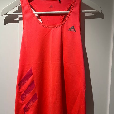 Adidas Fitness T-skjorte i blå farge, størrelse L for dame. Kortermet design med tre hvite striper på venstre erme. Laget av pustende materiale egnet for trening og fysisk aktivitet.