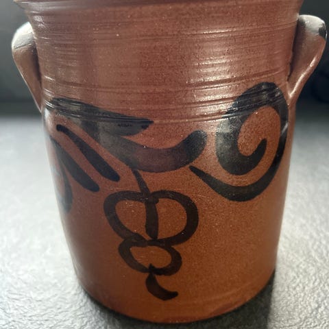 To fine brune krukker selges. Den ene har nagg på kanten som vist.