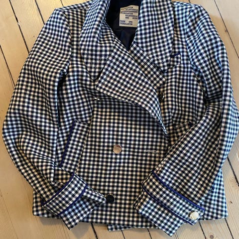 Jakken er i str. 36, men oversized (stor i str). Pent brukt.
