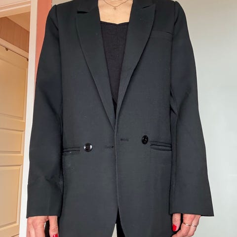 Høstens fineste blazer fra Claire str 40. Blazeren er i høy kvalitet i tynn ullblanding med pene knapper. Super med en fargerik rosa topp inni eller med rød bukse og oppbrettede ermer (rødt for) Koster kr 2.499 i butikk. En skikkelig garderobe investering.