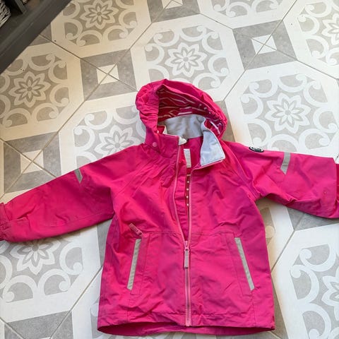 Pent brukt skalljakke fra Polarn O. Pyret. Rosa/cerise farge. Deilig for i kragen. Avtagbar hette.