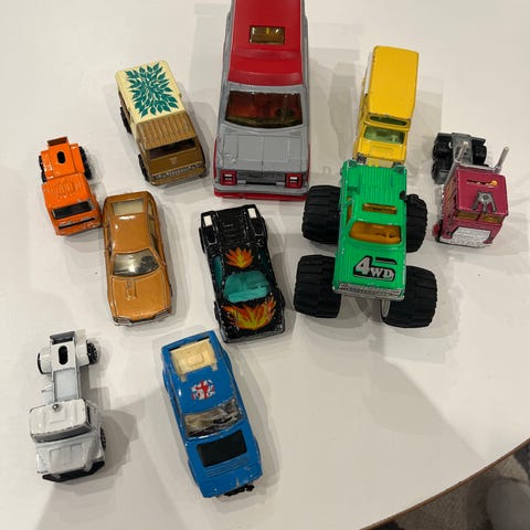 Liten samling med fem småbilar från Majorette. Peugeot 604 no 238, Mercedes 450 SE no 249, Fourgon no 224-259, McLaren F1 no 289 ( 2 st). Säljes samlat.