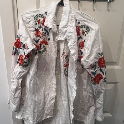 Nydelig tunika i Str S/M. Fremstår som ny. Ingen flekker. Broderte blomster 🌺🌸🏵️🌹