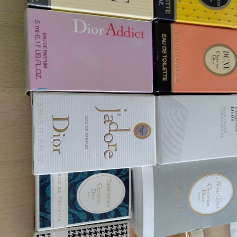 Små parfymer. 1 ml, 1,2 ml, 1,5 ml og 2 ml. 50 kr pr stk.