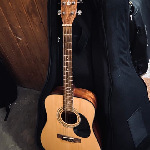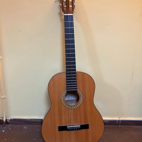 Lite brukt akustisk gitar. Trenger en ny streng, Ellers helt fin. Kjøpt for et par år siden men veldig lite brukt .