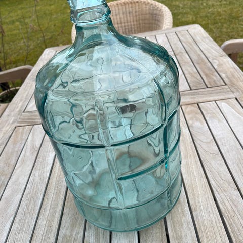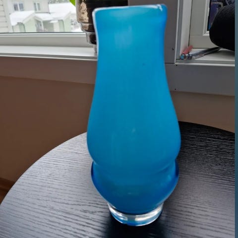 Turkis glass vase, høyde 19,5 cm. Må hentes