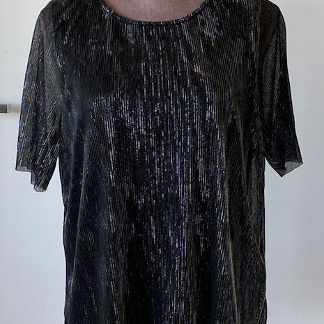 Flott topp, elastisk, litt stor i str. Passer både s og m. Glitter- stoff.