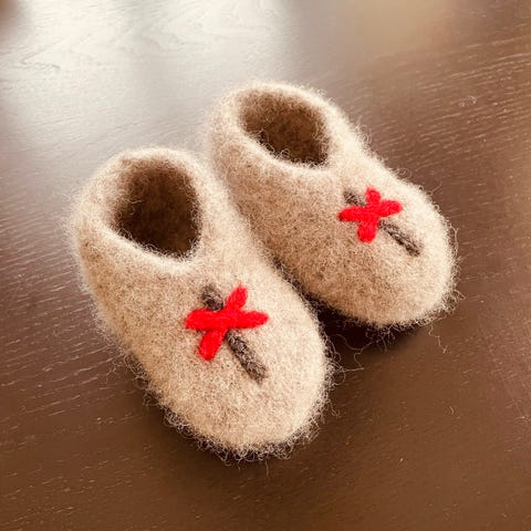 Nye grå ulltøfler fra Norgesull, i str 25-26 i gråmelert. Sålen har antiskli. 100 % ull. Nypris 350,-