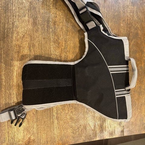 Helt ubrukt sele til hund. Svart bevernylon og kraftig utførelse med remmer til bryst og mage + refleks. Kraftig ring til bånd og bærehåndtak på rygg. Max livlinje 64 cm, min 40.