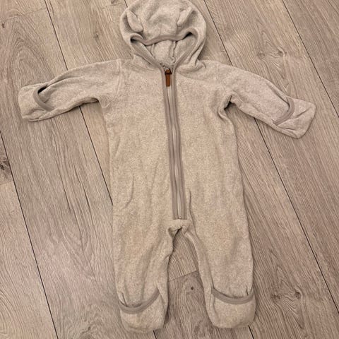 Kan brukes som kosedress inne eller som isolerende lag under utedress. Ytterside 100 % polyester; innside 100 % bomull. Fra Cubus.