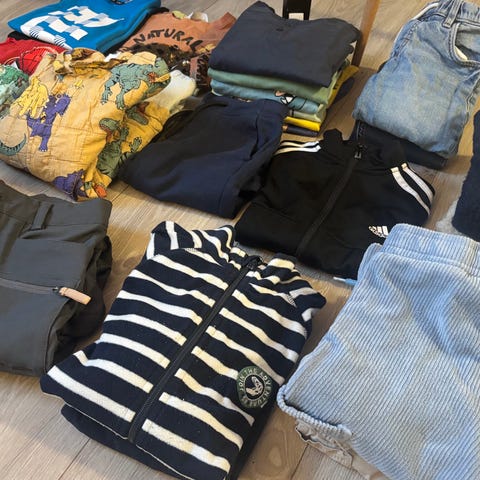 4 tskjorter, 4 gensere, 2 skjorter, 2 solhatt