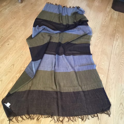 Lengde : 160 cm (pluss frynser 25 cm, på hver side)