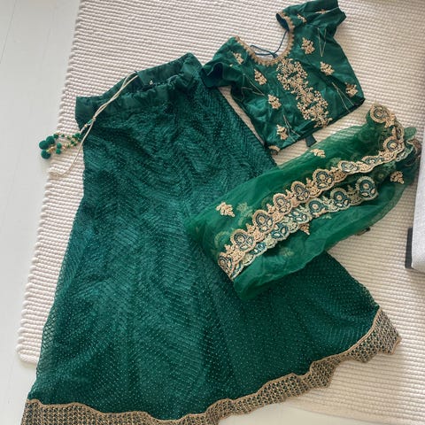 Pakistansk kjole/suit med sjal og pouch-veske.