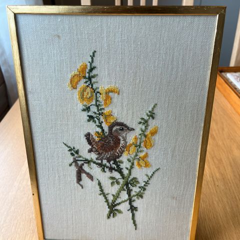 4 stk broderte nissebilder. Store 12cm små 10×8cm Selges samlet.