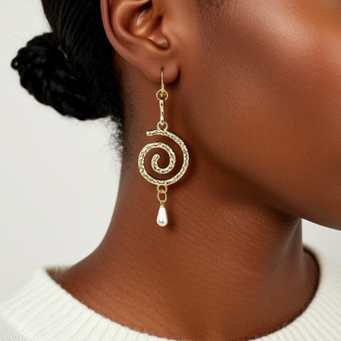 Lastebil i bevegelseFiks ferdig110 krGullfarget spiralformede øredobber med perledetaljerArendalLegg til som favoritt.