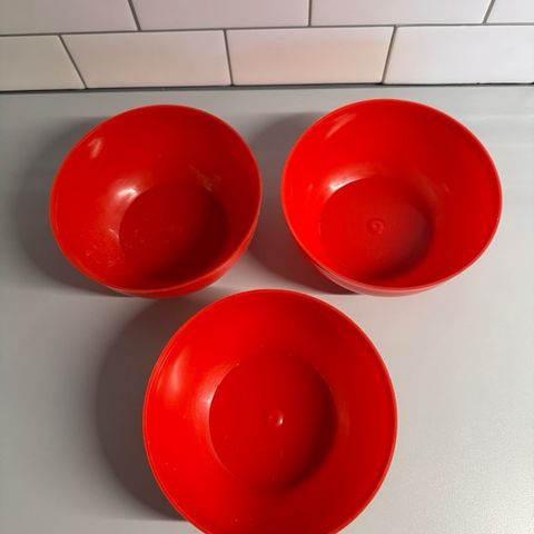 6 røde skåler i retro vintage plast