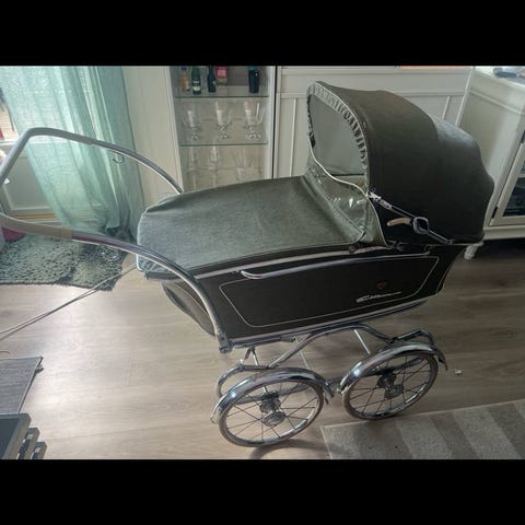 En spesiell barnevogn i burgunder velur fra 1973 ( den gang vi kjøpte den var det kun 2 stk her i landet sa importøren). Hvis vi husker helt riktig så var den far Frankrike. Klarer ikke helt å tyde logoen. Men modellen er en MG Bebe Comfort for de som har greie på det.