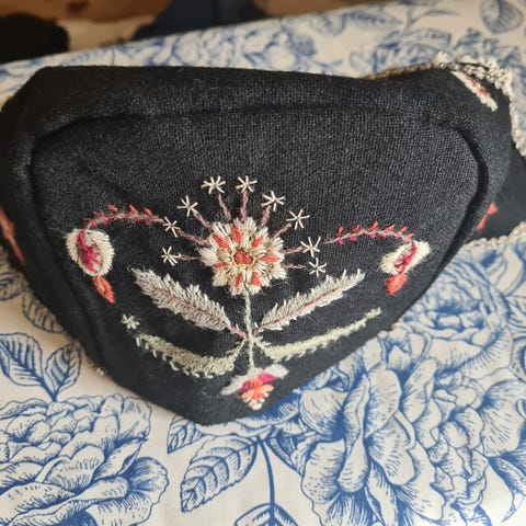 Selger denne ubrukte lua til rogalandsbunaden, løland mønster. Sydd i Stavanger. Jeg opplever den som litt liten. Man bør ikke ha mitt tjukke hode om man kjøper. Jeg bruker str 58-60 i hodeplagg. Sender gjerne for kjøpers kostnad.