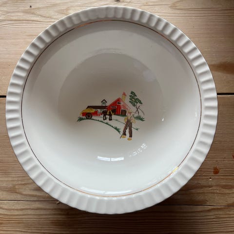 Bolle i serien Figgjo Solbakken. Den måler 20,5 cm i diameter, er virka 9 cm høy og tilhører et sett med seks boller. Dette er den nest største. Kanskje du mangler denne?