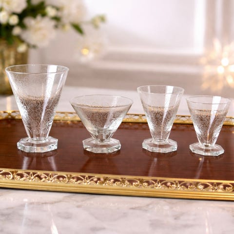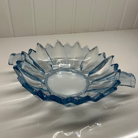 eldre serveringsfat i glass gul dekor