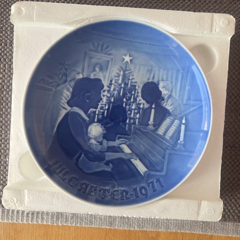 Porselensplatte med motiv Pantomimeteateret i Tivoli, København. Serienr 8508/619. Helt og uskadet eksemplar, fortsatt i eske.