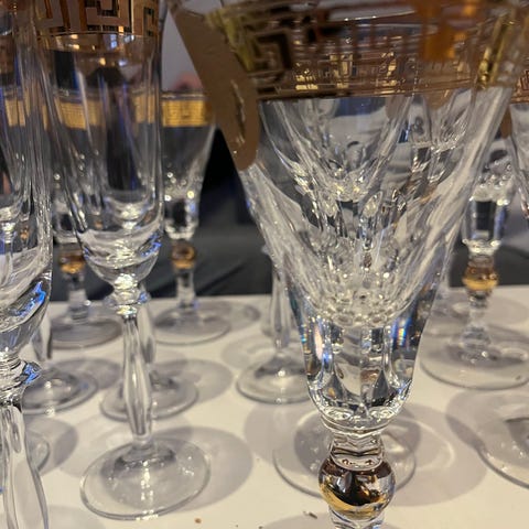 Vakkert porselens servise som består av 6 kuverter. Hver kopp skål og asjett. Mye « gull» og nydelige anemone blomster. Lite og pent brukt. Uten brist eller skår. Samlet pris oppgitt.
