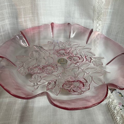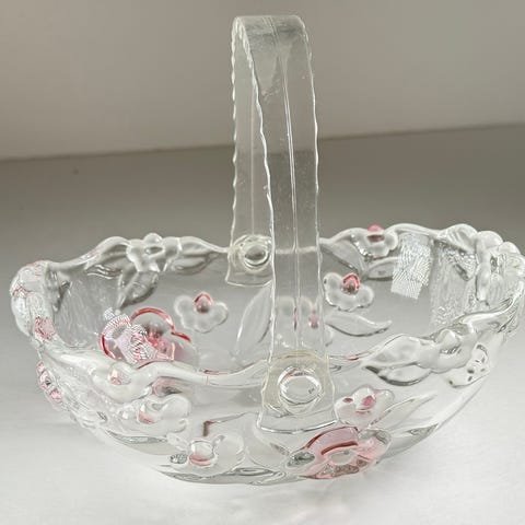 Fatet er i tykt rosa og blankt glass og produsert av Walter glass..