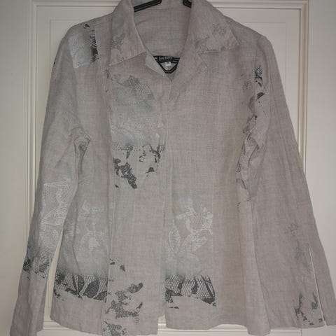 Nesten ikke brukt da den fort ble for liten. Ganske korte armer (3/4). 100 % Ramie er et sterkt fiber som er framstilt av stengelen på Ramieplanten og som minner mye om Lin. Se gjerne mine andre annonser for eventuell samsending.