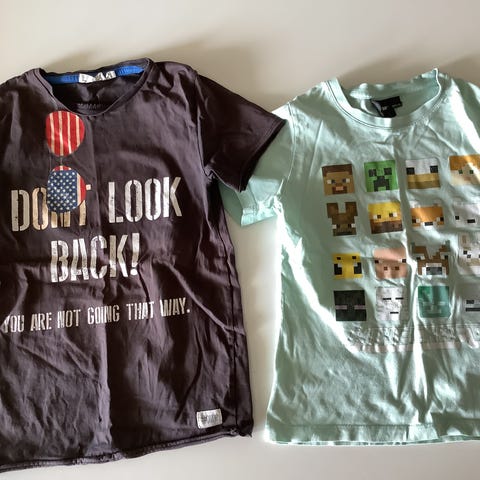 To T-skjorter str 9-10 år. Ubrukt /lite brukt