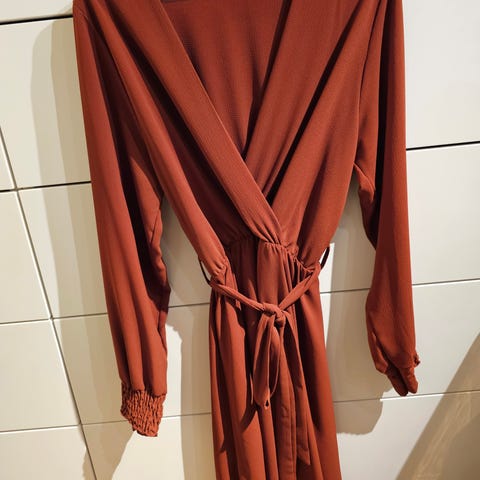 Kjole i fargen "burnt orange". Merket er KDK London. Størrelse 40. Som ny - brukt kun én gang. Kjøpt for 998 kr.