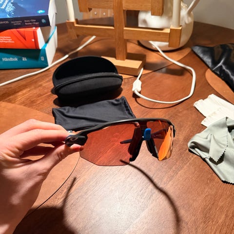 Brukte wind jacket briller, har en ripe og skade i glasset. Selges derfor veldig billig. Glass må helst byttes.