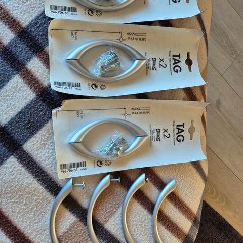 13 stk nye Fixxer møbelhåndtak i børstet nikkel selges kr 50 pr stk/ 500 samlet. Nypris 119 pr stk/ 1547 samlet.
