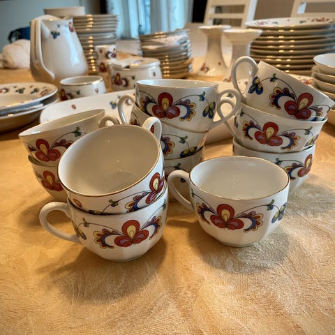 Pent og ubetydelig brukt kaffeservise til 11 personer.