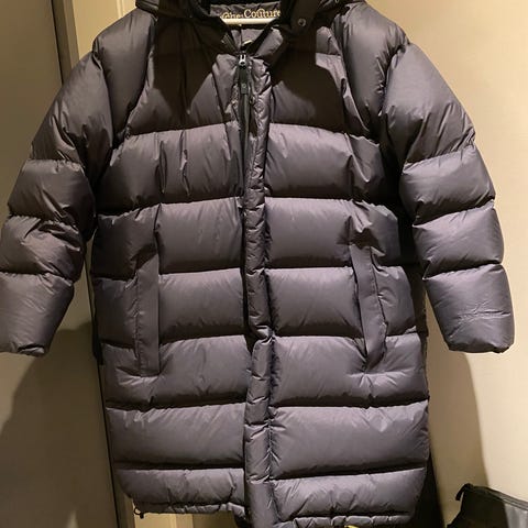 Dunparkas fra Fleischer Couture selges. Marineblå med gulldetaljer, str 36💙❄️ Parkasen er varm og myk å ha på.