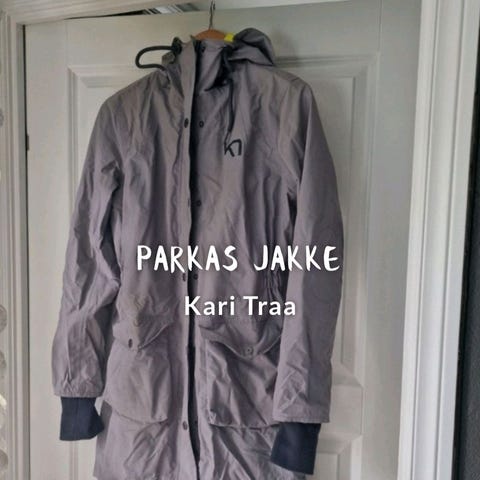 Kjempefin Kari Traa parkas i dus grønn med snøring i livet, str XS, men passer meg som normalt bruker S i jakker. Veldig fint brukt, uten slitasje eller bruksmerker.