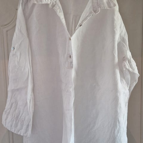 Hel pakke med dameklær i beige farge, størrelse 54. Laget av lin og økologisk bomull, designet for kvinner. Her får du flere plagg med detaljer som knapper og mønstre. Alt nytt ubrukt selges samlet ,prisen er da for alle plaggene.